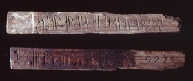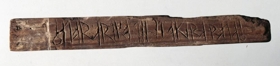 Rúnakefli sem fannst á Bergþórshvoli með rúnastafrófi og vel þekktri töfraklausu. Frá 16.–18. öld.