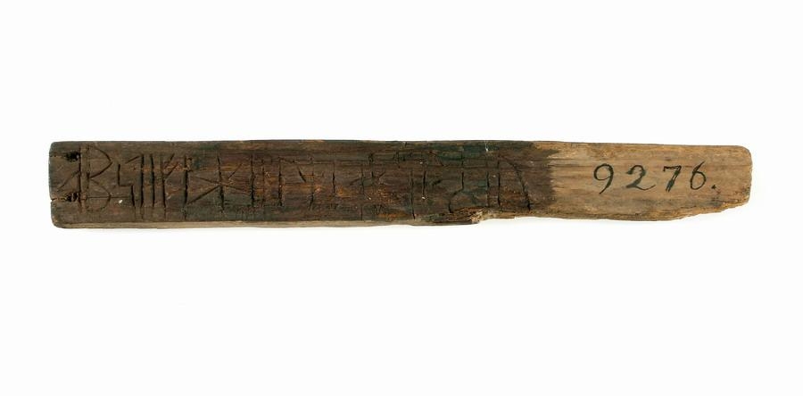 Rune stick carved with the runic alphabet and a magical spell, 16th–18th century.