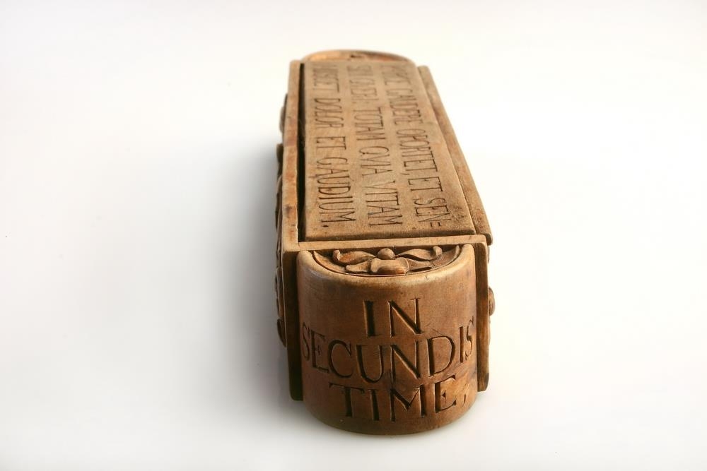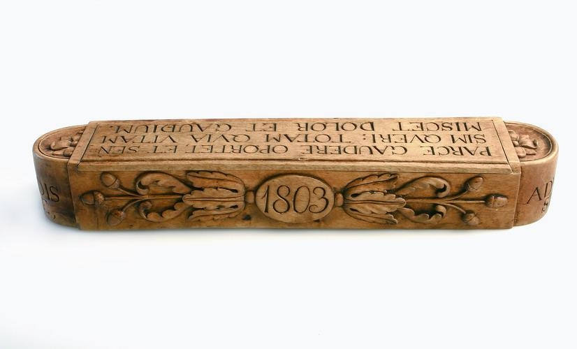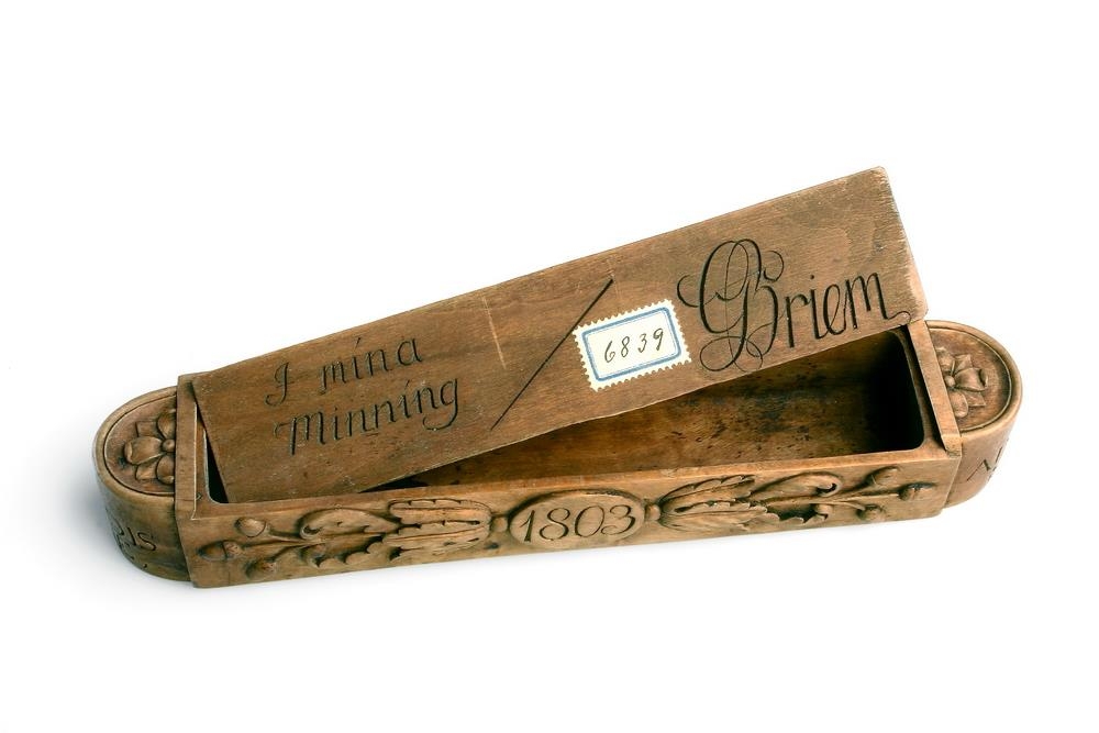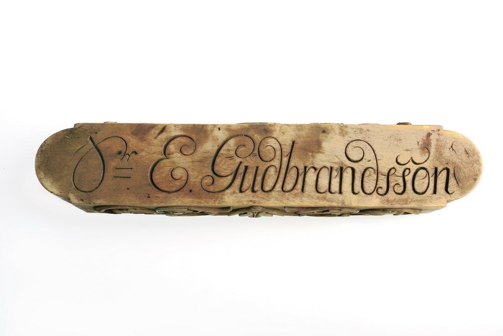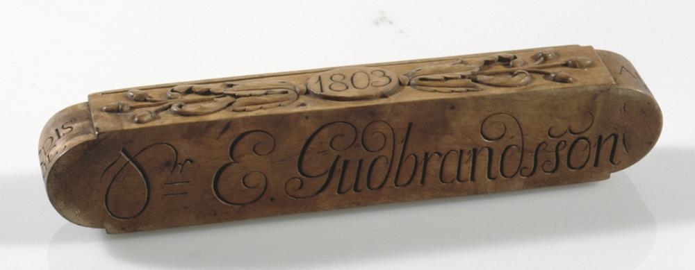 Stokkur, útskorinn úr birki af Gunnlaugi sýslumanni Briem, sem lærði útskurðarlist og myndasmíði í Kaupmannahöfn 1788-1795, föðurfaðir gefandans. Stokkurinn er ferstrendur eintrjáningur, l. 22,9 cm, 4,9 að br. og 3,4 að hæð, boginn fyrir báða enda og með dragloki, sem gengur út frá annari hliðinni. Á báðar hliðar eru útskornar greinar með upphleyptu verki, og er ártalið 1803 á skildi á miðri framhlið. Á botninn er skorið með skrifletri: Sr E. Guðbrandsson, þ.e. séra Einar, seinna prestur að Hjaltabakka og síðast að Auðkúlu, bróðir Gunnlaugs: d. 1842. Á annan enda er skorið: IN SECUNDIS TIME, en á hinn: IN ADVERSIS SPERA. Á lokið er skorið: PARCE GAUDERE OPORTET, ET SENSIM QVERI: TOTAM QVIA VITAM MISCET DOLOR ET GAUDIUM. Neðan á lokið er skorið með skrifletri: Í mína minníng / G Briem (G og B samandregnir). Stokkurinn er snilldarvel skorinn og að öllu hinn vandaðasti gripur.