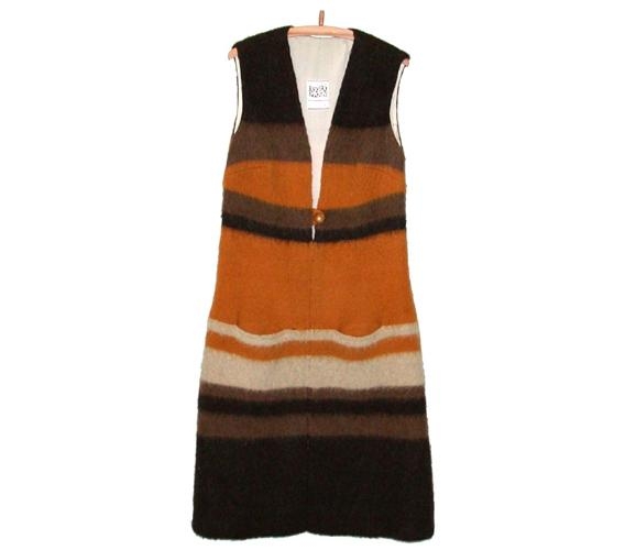vasar. Hann er nokkuð fleginn að framan og hnepptur neðst með einni tölu.