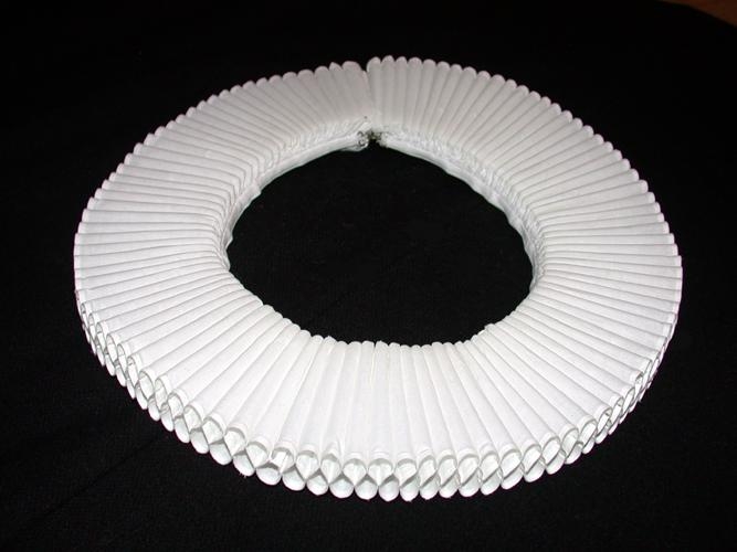 úr hvítu lérefti. Kræktur saman með einni krækju. Kraginn er úr eigu föður
