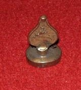 er upphleyptur hjörtur en hinum megin er blómaskreyting. Á stimplinum eru