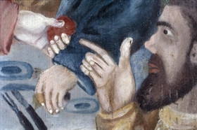 „Ámundi var afkastamikill og dáður kirkjusmiður og málari á Suðurlandi á 18. öld. Listgripir hans prýða enn nokkrar kirkjur í Árnes- og Rangárvallasýslu. Til eru þrjár altaristöflur í Þjóðminjasafninu eftir hann og málaðar fjalir og skurðverk af þremur predikunarstólum, svo og gripir og viðir úr Stóra-Núpskirkju. [...] Stærst og glæsilegust þeirra altarismynda sem varðveist hafa eftir Ámunda úr Oddakirkju. Hún er einnig í þrennu lagi og er miðtaflan með vængjum. Á burstinni er áletrun sem segir töfluna hafi látið gera Árni prestur Þórarinsson árið 1738. Það mun vera Árni Þórarinsson, síðar Hólabiskup, en hann þjónaði Oddaprestakalli frá 1781 þar til hann tók við biskupsembættinu árið 1784. Oddakirkja eignaðist nýja altaristöflu í lok 19. aldar og var þá þessi tafla Ámunda tekin niður. Hún kom til Þjóðminjasafnsins árið 1912, talsvert skemmd, m.a. hafði verið málað yfir stóran hluta hennar með bleikri málningu. Oddakirkja mun hafa eignast slíka málningu seint á 19. öld og var hún óspart notuð á ýmsa gripi.