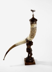 Glímuhornið, sem í aðfangabók safnsins er nefnt „Íslandshornið“, er mjög stórt (107 cm langt), útskorið og silfurbúið. ...