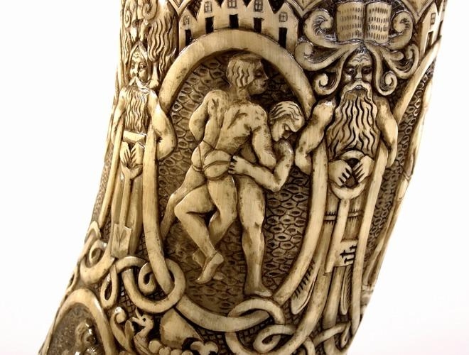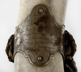 At Þingvellir in 1930, the Iceland Horn was awarded to Sigurður Thorarensen, the winner of a contest in glíma (traditional Icelandic wrestling). Carved by Ríkarður Jónsson, the horn bears the names of the competitors.