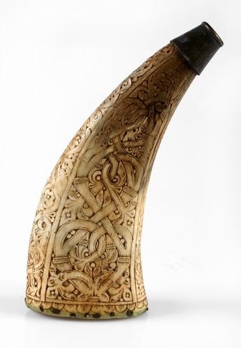 allt útskorið með hnútarósum og fuglamyndum í hálf-býsönskum stíl. Var