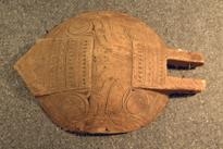 Útskorið asklok sem fannst á vegglægju í skemmu á Prestbakka á Ströndum.