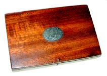 Vídalíns konsúls. Kassinn er úr mahóní og á lokinu er silfurplata
