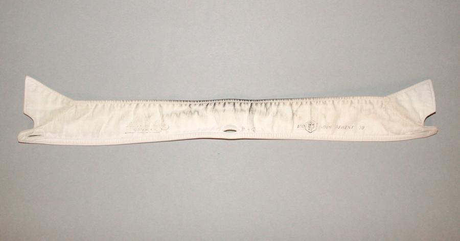 2007-42-2. Flibbinn er úr hvítu lérefti og er saumaður hjá fyrirtækinu