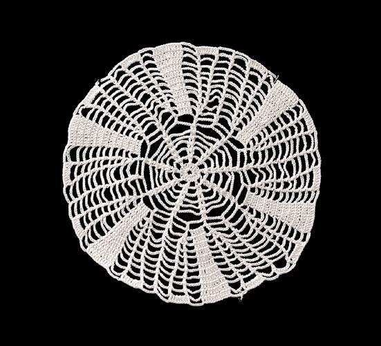 11,5 cm í þvermál. Haganlega gerð. Kom ásamt öðrum munum nr. 1999-8. Hannyrðir