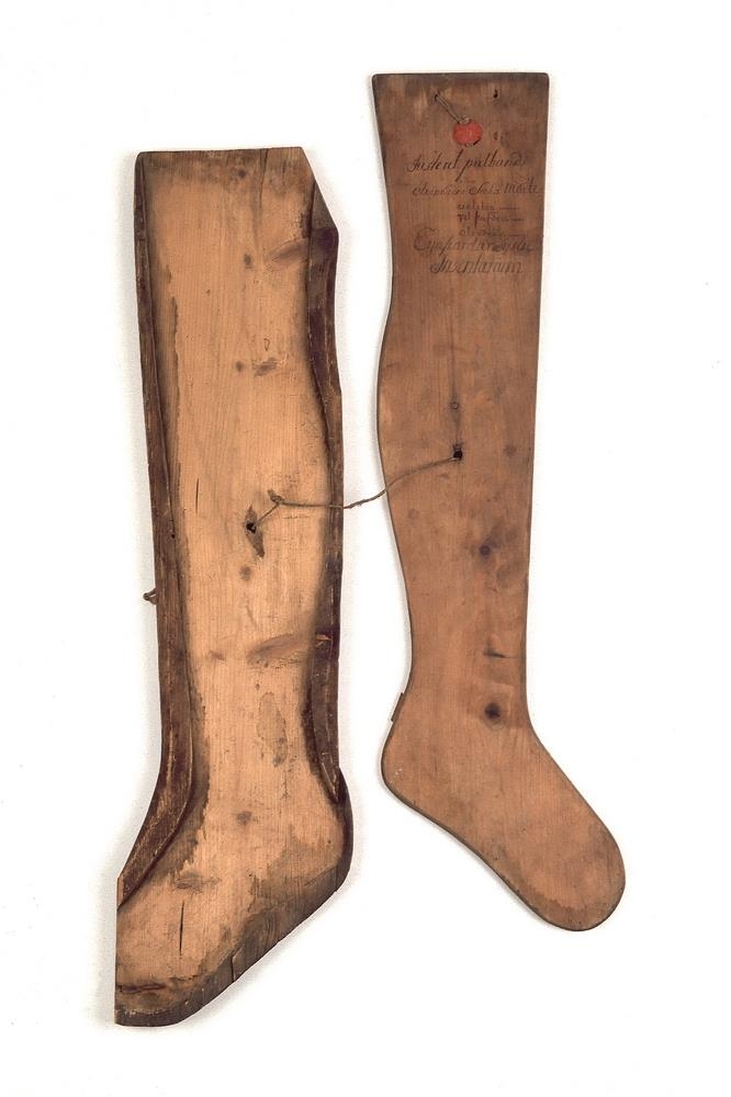 Sokkatré, löggilt með innsiglum sýslumanns og ártölum 1770 og 1778. Var við verslun J. Gudmans á Akureyri, til að máta með stærð á sokkum, sem treknir voru í verslunina sem útflutningsvara til Danmerkur. Prjón á sokkum og vettlingum til útflutnings var stór þáttur heimilisvinnu fólks til sveita fyrrum, en þessar flíkur munu einkum hafa verið notaðar af hermönnum. Flíkurnar skyldu vera af ákveðinni og löggiltri stærð.
