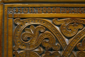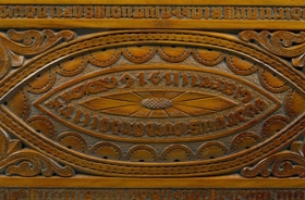 Rúmfjöl, ný, úr fíngerðum laufviði, 1,205 m að l., 25,8 cm að br. og 1,5 cm að þ. Á framhliðinni er sams konar útskurður og á fjölinni nr. Þjms. 12927, en í miðju er áletrunin gudrun sigurdardóttir / 6 april 1916, skorin með höfðaletri. Er þetta afmælisdagur frú Guðrúnar, konu Guðmundar Magnússonar (Jóns Trausta), skálds og prentara. Auk þessa eru 2 höfðaleturslínur á fjölinni, önnur ofan við og hin neðan við útskurðinn. Er þar grafin vísa eftir Guðmund: