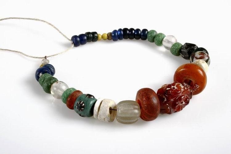 Steinasörvi með 32 tölum sem flestar eru úr gleri, sumar marglitar, tvær úr rafi og ein úr agati með skornu skrauti. Úr kumli konu á Kornsá í Vatnsdal. Frá 10. öld. 1782 Hálsfesti úr 32 perlum, flestum úr gleri, einnig úr rafi og agati. Úr kumli konu frá 10. öld.