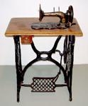 Fótstigin Singer saumavél. Lítil, með gylltu skrauti. Í borði er ein lítil skúffa. Saumavélin virðist vera í lagi. Var hluti af dánargjöf Gunnfríðar Jónsdóttur til safnsins (skv. erfðaskrá). Kom í eigu Gunnfríðar 1923 en er eldri.* Kom til safnsins ásamt 1970:26, 1970:27 og 1970:28.