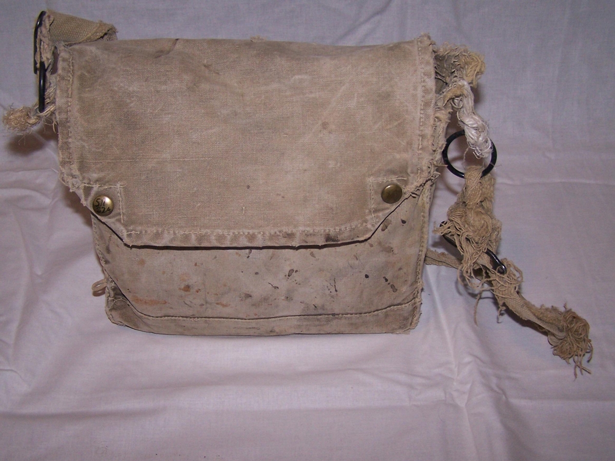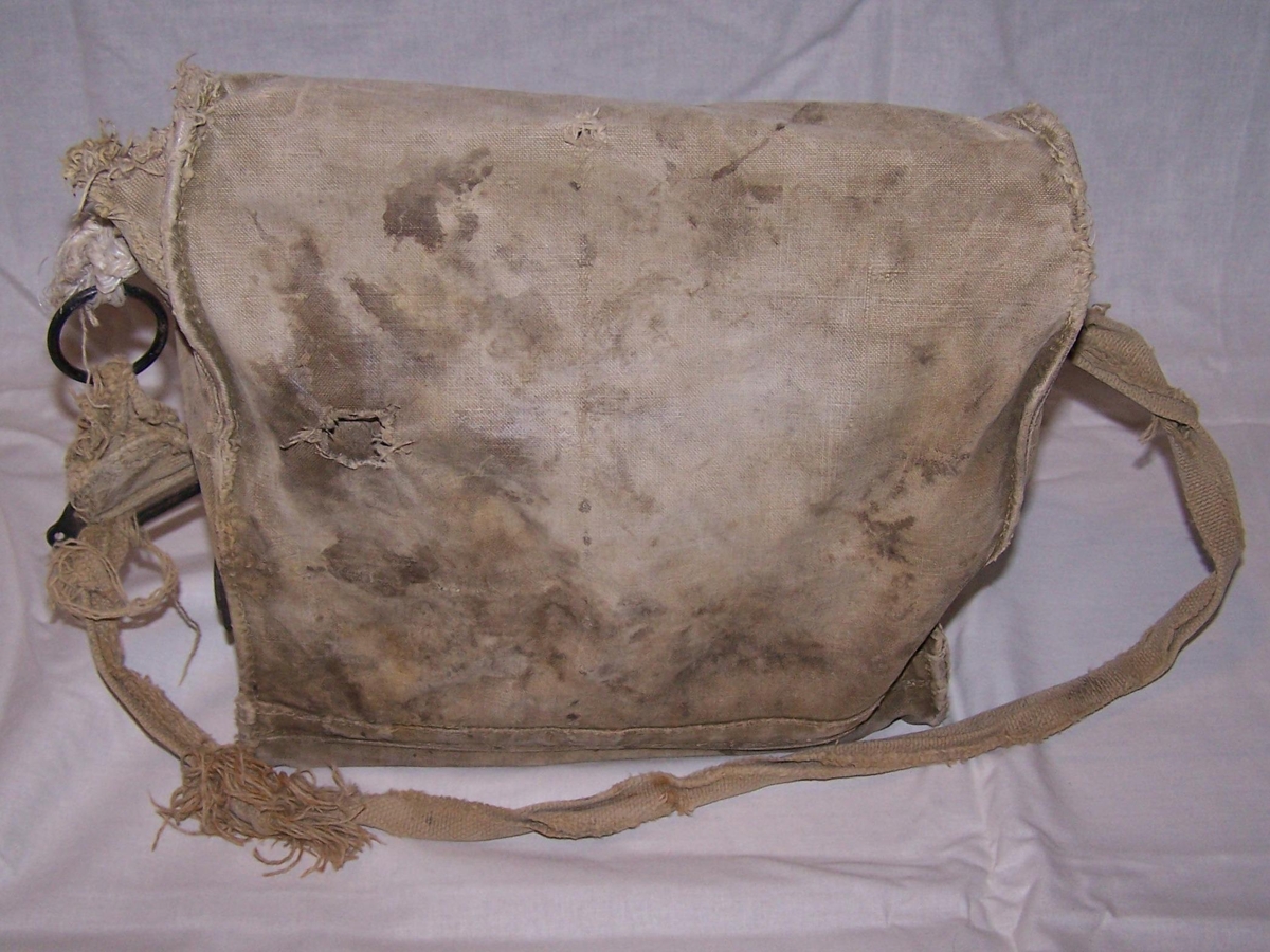 Rjúpnabyssa Óskars Guðjónssonar í áratugi, ásamt skotfæratösku og haglaskotum, 173 stk. sem sum eru frá 1958. Husquarna nr. 16, brennimerkt á skefti, ÓG. Verksmiðjunúmer 81376. Skotfærataskan er með tveimur hólfum, talsvert tætt og götótt. Mál á töskunni H: 28, B: 8, L:32.