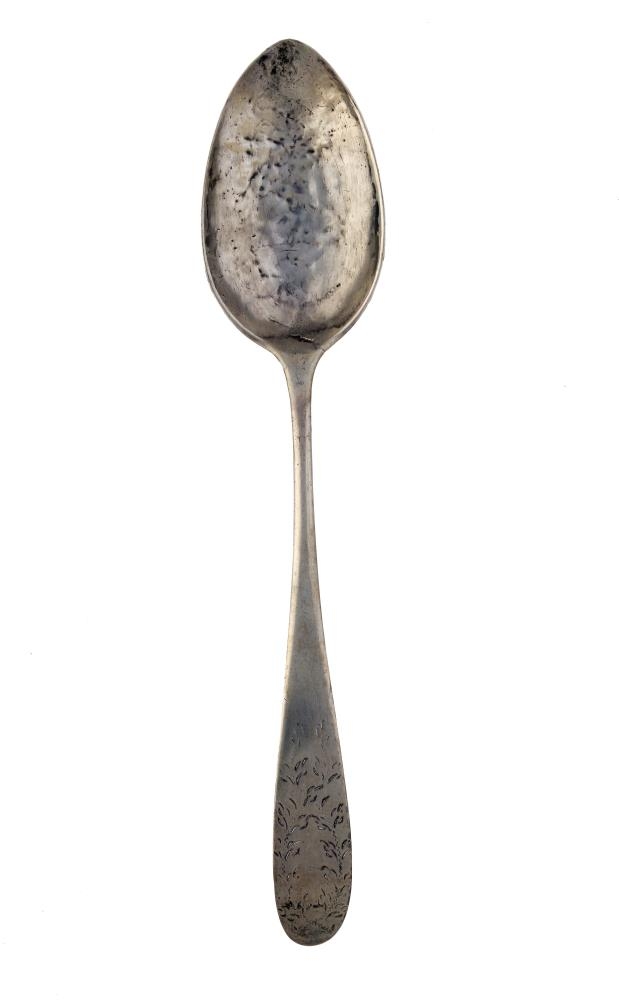Matskeið, úr silfri, venjul. lag: blaðið er 7,2 cm að l., 4,4 að br. og 1 að h., skaftið er 1,8 cm að br. breiðast, 0,4 mjóst, það er með dálitlu skrautverki framan á upp til: aftan á eru þrír stimplar og stendur í þeim: 18-STh-31: skeiðin er mjög slitin, 21 cm að l.