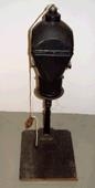 á trépalli sem er 42 x 46 cm. Hann er líkt og stór svartur hjálmur sem