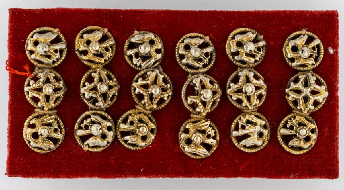 1) Höttpör 6 úr silfri, gylt: á króknum eru 2 smádoppur, 1,3 cm. að þverm. hver, krinlóttar, eru það vírsnúnir hringar og kveiktur gagnskorinn kross eða 4 blaða blóm á