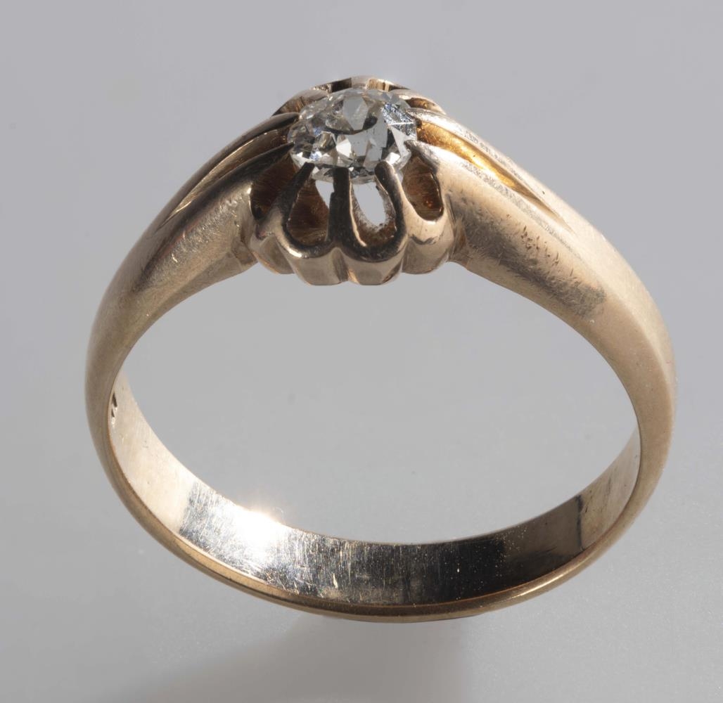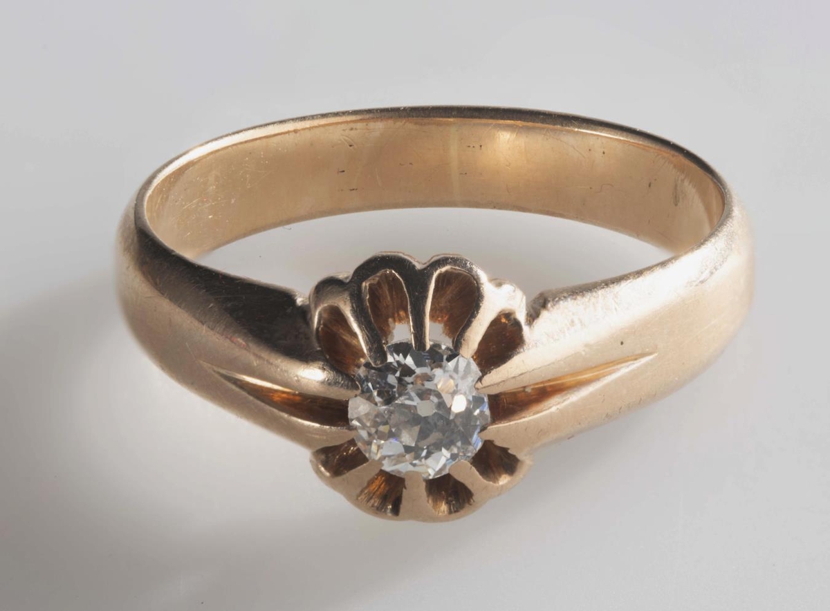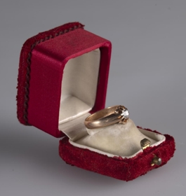 Fingurhringur úr (14K) gulli, efnismikill og vandaður; stimpill 585 innan í. Þvermál 1,8 cm. Með skærum steini, brilliant, í, 4,2 mm að þvermáli og 2,6 að hæð. Hringurinn er 3,7-4,8 mm að breidd og krónan um steininn 8,3 mm. Hring þennan átti María Stephensen, en frú Anna Stephensen kvaðst hafa borið hann síðan María dó. Hann er í rauðu hringhylki, hvítu innan.