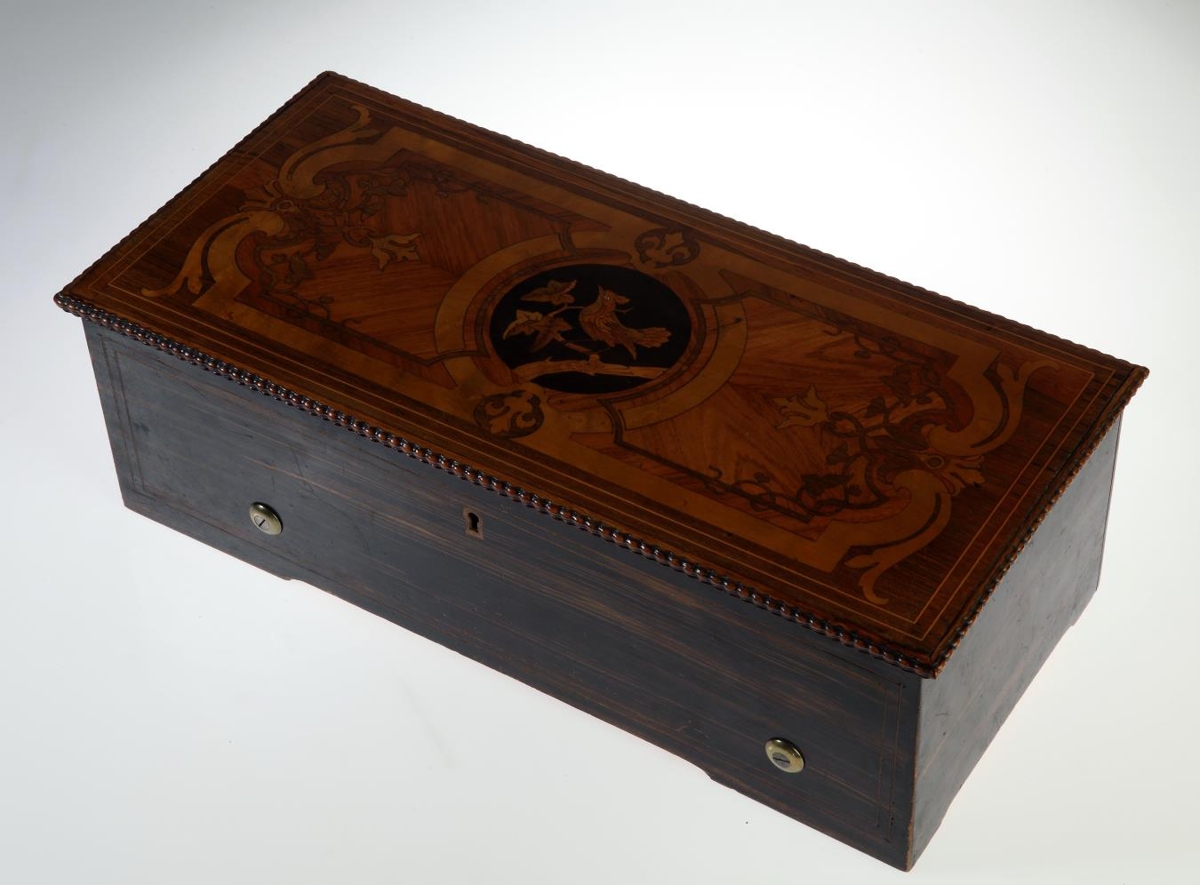 Spiladós sú, er prins Jerome Napoleon gaf dr. Pétri Péturssyni biskupi, föður gefanda, 1856. Hún er (þ.e. kassinn) úr smágjörvum laufviði, með palisanderpoleringu að utan, og með 2 lokum, innra úr gleri í grannri umgerð yfir verkinu; ytra með mjög skrautlegri spónleggingu úr ýmsum viðartegundum. Vinstri gafl er tvöfaldur og innan við hinn er hálf, utan við verkið.