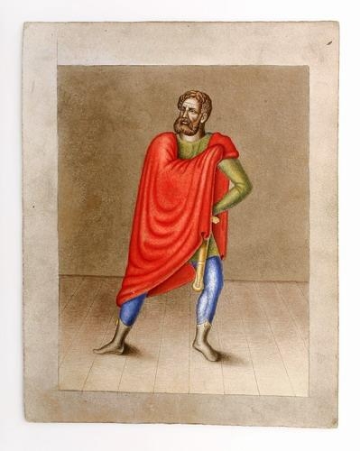 Teikning, vatnslituð, af karlmanni.
