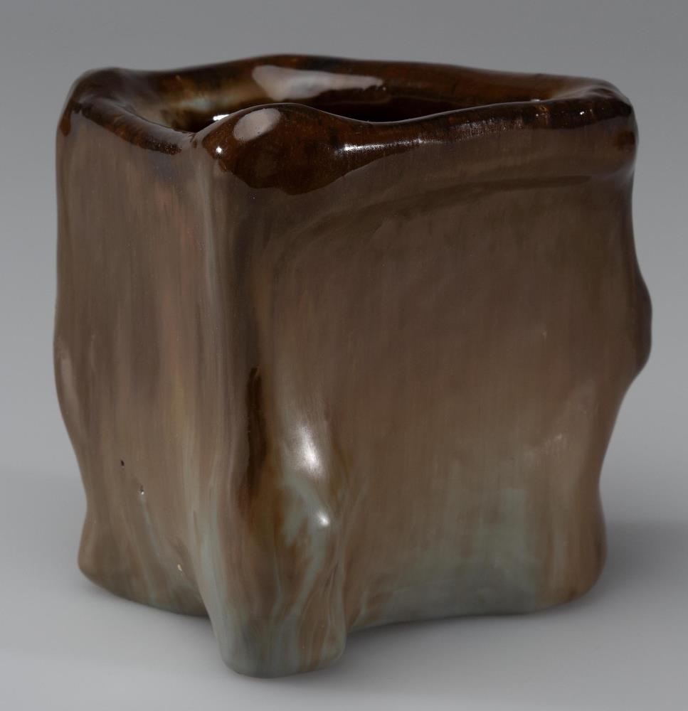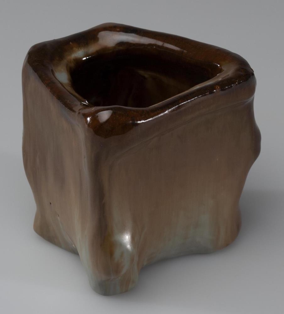 Blómsturpottur, í lögun sem óreglulegur ferhyrningur, virðist vera líkt eftir steinhnullungi; brúnn með bláleitum blettum á hornunum og eins neðan til. Þvermál mest 11 cm, minnst 8, hæð 11,4 cm. Gat á botninum.