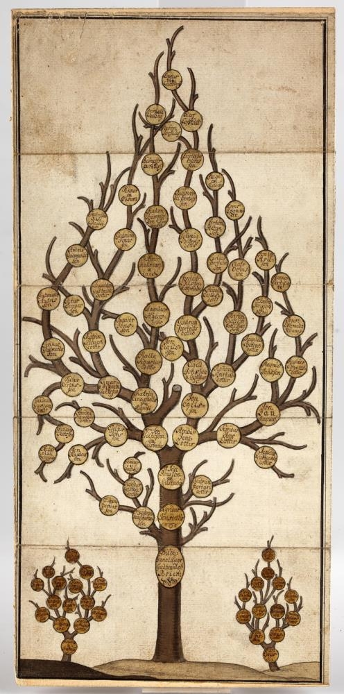 Nr. 96 b og c eru tvær eptirmyndir af þessu ættartré, eptir Samúel kennara Eggertsson í Reykjavík, önnur mjög stækkuð og í gylltri umgjörð með gleri, st. 61 x 84 cm.