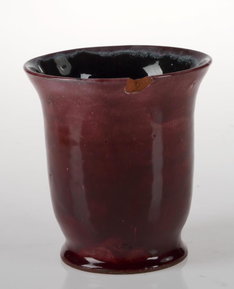 utan, svart innan; hæð 10,9 cm, þvermál um barma 10,2, um stétt 7. Sbr.