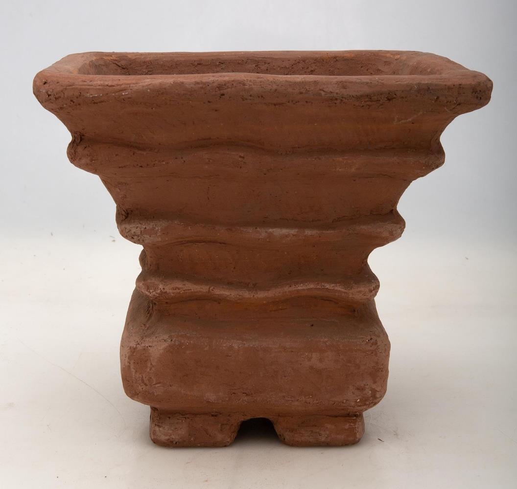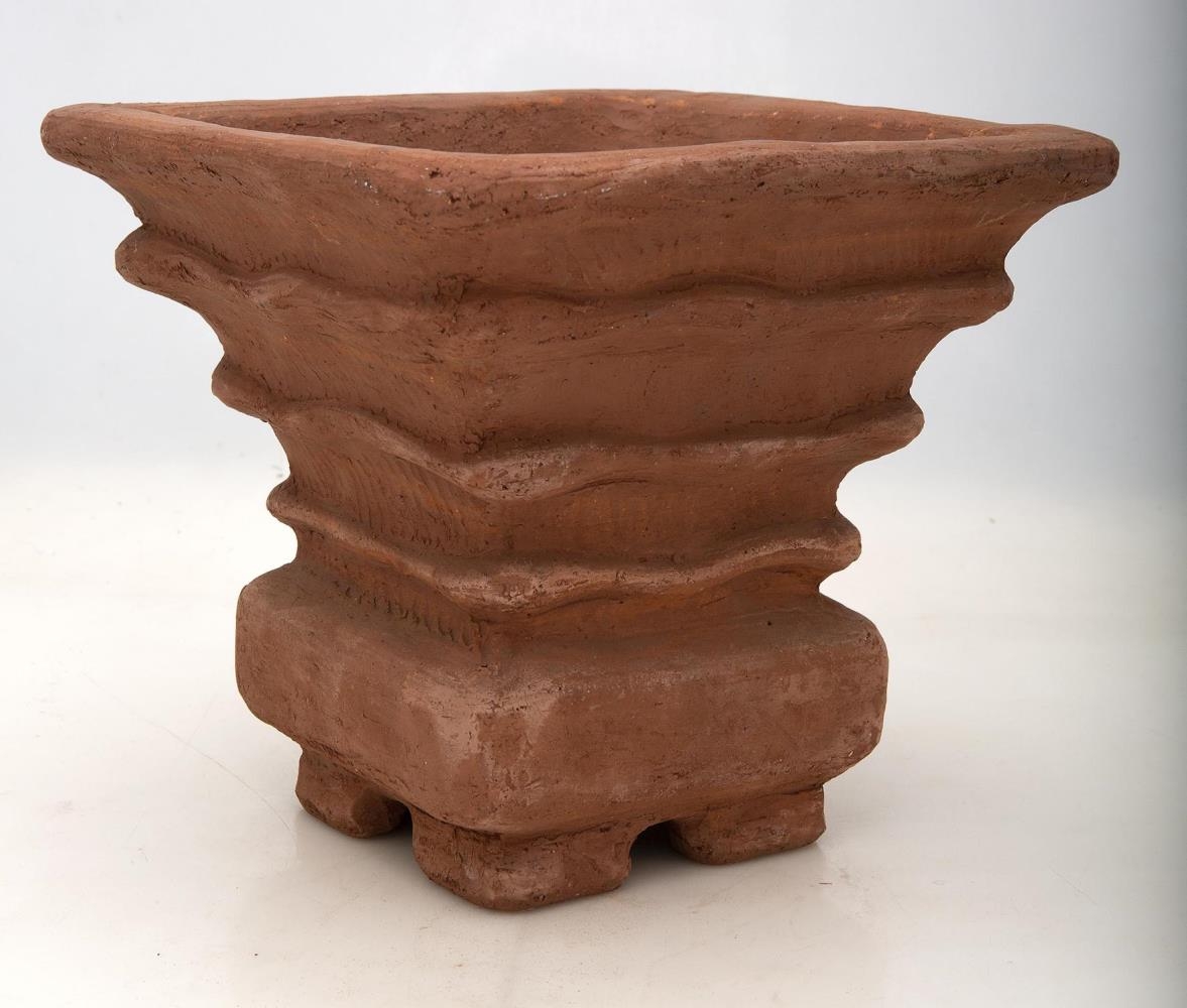 Ker, ófullgert (eins og nr.153), ferkantað, mjókkar niður, með 3 bryggjum á hliðunum allt í kring, stétt undir, sem stendur á 4 lágum fótum; 23,5 x 23,5 um barmana, 15,5 x 15,5 um stéttina, hæð 23 cm.