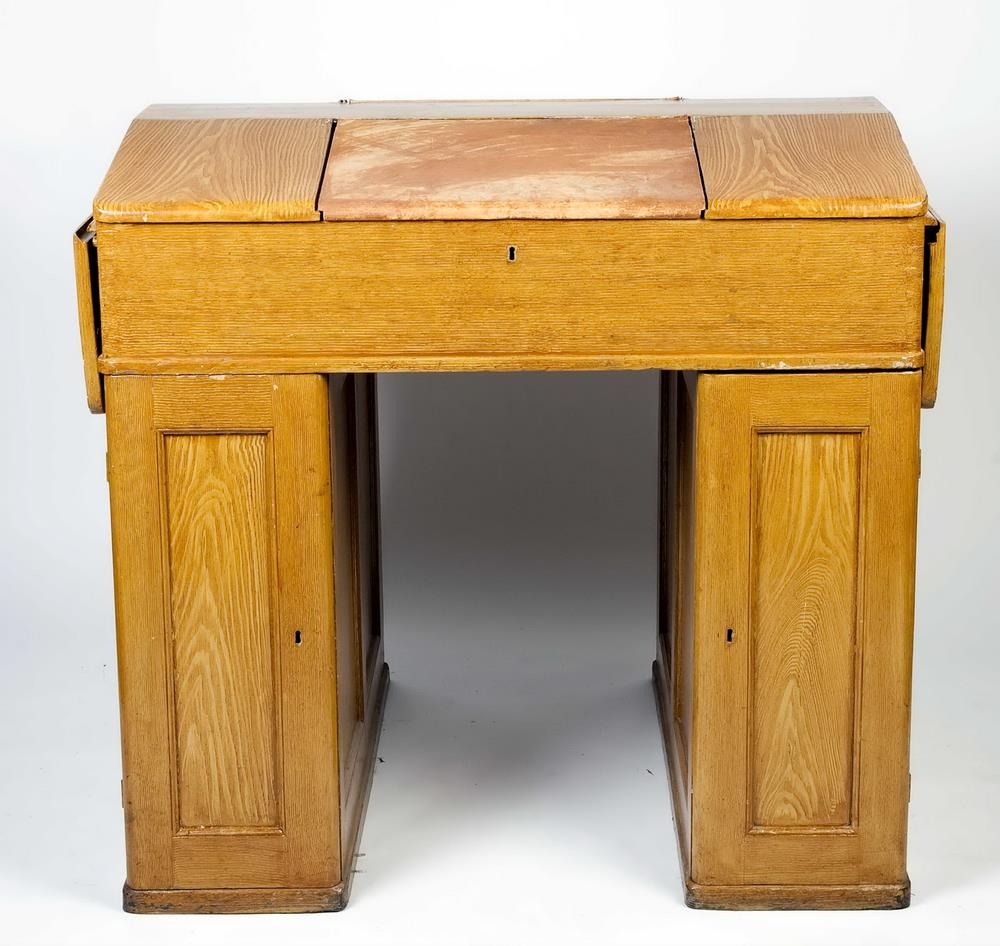 skápum undir. Púltið sjálft er tvöfalt, hæst í miðju, og lokin með jöfnum