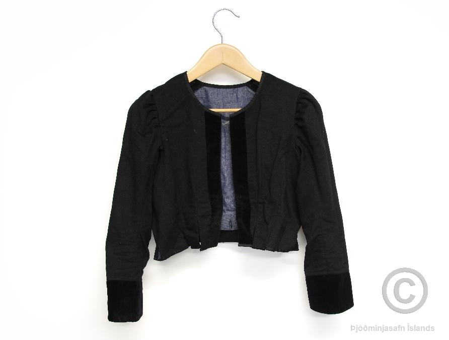 Peysufatapeysa / stakkpeysa / stokkpeysa úr svörtu klæði. Peysan er aðskorin, eins og peysufatapeysur jafnan eru, með stakk (stokk) að aftan sem leggst yfir pilsið. Á boðunga og fremst á ermar er saumað svart flauel. Ermarnar eru með svolitlu púffi á öxlum, eins og fór að tíðkast á tuttugustu aldar peysufatabúningum. Peysubolurinn er fóðraður með bláu bómullarefni og ermarnar með gráu bómullarefni en fremst eru þær fóðraðar með svörtu efni. Peysan er krækt að framan með sjö krækjum. Þar af er ein þeirra efst við hálsmálið. Eilítið ryð er komið í krækjurnar að framan og nokkur örsmá göt eftir skordýr eru á peysunni en annars er hún í mjög góðu ástandi. Peysuna saumaði Hallfríður Árnadóttir (f. 1857, d. 1925), væntanlega þegar hún var húskona á Blómsturvöllum árin 1907-1912. Óljóst er hvort Guðríður Þórarinsdóttir, húsfreyja á Blómsturvöllum, átti peysuna eða einhver dætra hennar.
