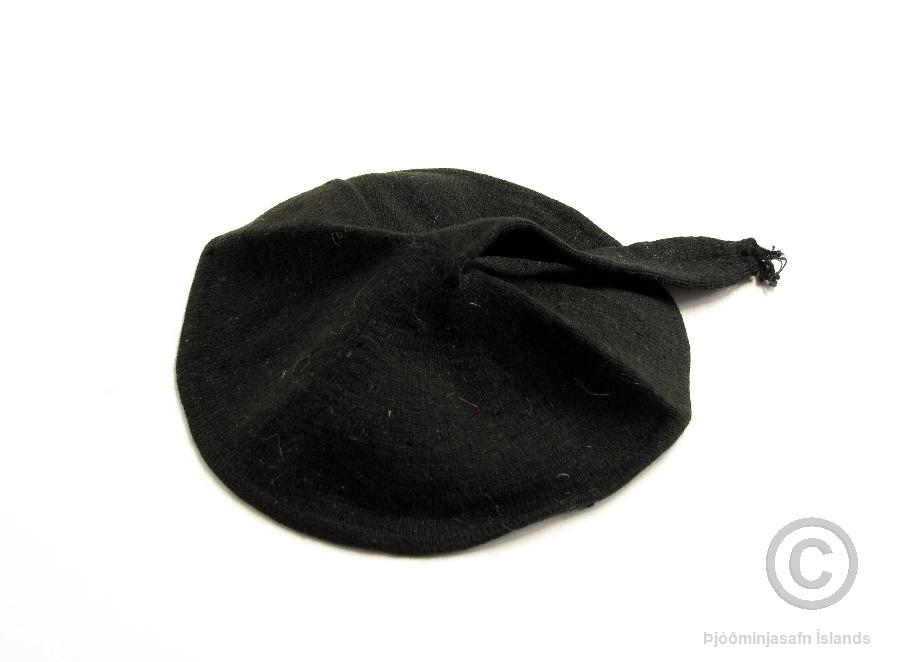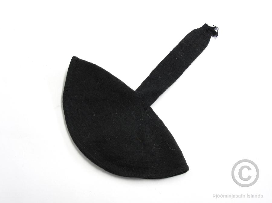 Grunn skotthúfa, kollhúfa, prjónuð úr svörtu ullarbandi. Húfan er um 16,5 cm í þvermál, mjög grunn, og skottið er um 11,5 cm langt. Skúfhólk og skúf vantar. Húfan er úr eigu Guðríðar Þórarinsdóttur, húsfreyju á Blómsturvöllum í Fljótshverfi á árunum 1903-1947. Guðríður hefur væntanlega prjónað húfuna en bandið í hana spann dóttir hennar, Elín Ólöf Ólafsdóttir (f. 1901, d. 1954) sem alla tíð bjó á Blómsturvöllum. Ætla má að húfan sé frá því um 1910-1920. Grunnar prjónaðar kollhúfur sem þessar tíðkuðust annars helst á síðustu tveimur áratugum nítjándu aldar.