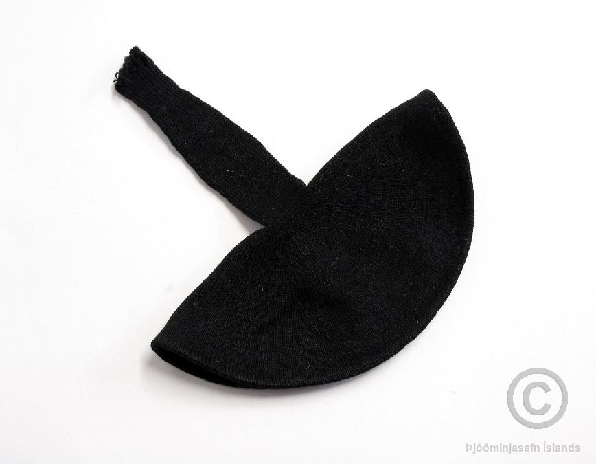Grunn skotthúfa, kollhúfa, prjónuð úr svörtu ullarbandi. Húfan er um 15 cm í þvermál, mjög grunn (nánast flöt), og skottið er um 9,5 cm langt. Skúfhólk og skúf vantar. Húfan er úr eigu Guðríðar Þórarinsdóttur, húsfreyju á Blómsturvöllum í Fljótshverfi á árunum 1903-1947. Guðríður hefur væntanlega prjónað húfuna en bandið í hana spann dóttir hennar, Elín Ólöf Ólafsdóttir (f. 1901, d. 1954) sem alla tíð bjó á Blómsturvöllum. Ætla má að húfan sé frá því um 1910-1920. Grunnar prjónaðar kollhúfur sem þessar tíðkuðust annars helst á síðustu tveimur áratugum nítjándu aldar.