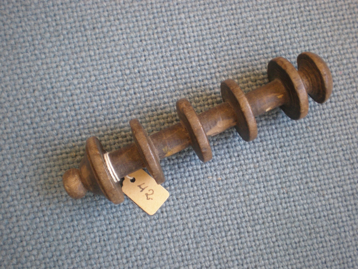 Þráðarkefli fyrir fjóra liti, úr mahognýviði, lengd 11 cm.