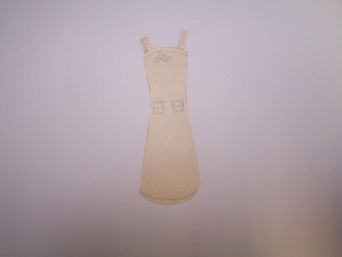 Heimagerður dúkkulísuskokkur. Úr dúkkulísusafni úr eigu Bryndísar Bjarnadóttur, sem ólst upp í Bjarnahúsi á Húsavík. Bryndís var ein af 15 systkinum (einnig átti hún eina fóstursystur) og var hún 5. í systraröðinni. Dúkkulísurnar gengu í arf á milli systra. Dúkkulísurnar voru klippar úr tískublöðum/Modeblöðum og príslistum/pöntunarlistum. Eldri systir Bryndísar, Ásta, reyndi oftast að ná öllu frá Bryndísi og þegar Bryndís fékk eina manninn í dúkkulísusafninu. Þá vildi Ásta fá hann og sagði systur sinni að hef hún ekki eignaðist manninn þá myndi hún deyja, „jæja Ásta mín þá verður þú bara að deyja“ svaraði Bryndísþ. Bryndís gaf yngri systur sinni dúkkulísurnar, Hansínu Margréti Bjarnadóttir, sem passaði mjög vel upp á alla hluti og hún geymdi þær upp á háalofti, á Reykjum í Mosfellssveit. Dúkkulísurnar komust svo aftur í eigu Bryndísar eftir að Margrét Hansína dó. Dúkkulísurnar voru otaðar að vetrarlagi, þegar ekki var útiveður. Tvær til þrjár systur léku sér þá með dúkkulísurnar á rúmum í svefnherbergjum á loftinu, Helga Sigurjóns og Solla Jónasar vinkonur þeirra komu úr næstu húsum til að taka þátt í leiknum. .