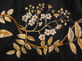 Gefandi afhenti ennfremur útsaumað veggtjald sem langamma gefanda, Alma Clara Margrethe Thorarensen (fædd Schiöth), saumaði (Þjms. 2012-13-10).