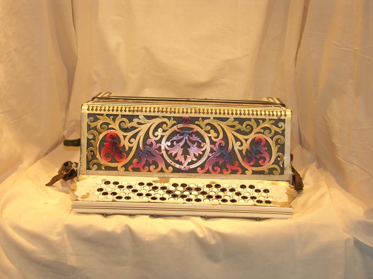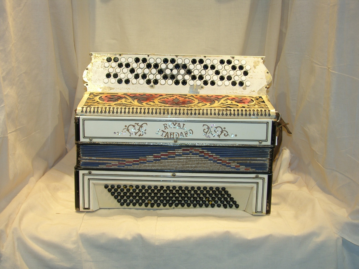 Hvít hnappaharmonika af gerðinni ROYAL STANDARD, 92 nótur í diskant og 120 í bassa, 5 kórar og 1 skipting. Framleidd í Þýskalandi. Í bassablokk stendur: „Carl M. Iversen, Oslo“, líklega er hún keypt þar. Einnig stendur: „Viðgerð 1950, Jóhannes Jóhannesson“. Guðbjartur S. Guðlaugsson frá Hokinsdal í Arnarfirði, kaupir harmonikuna notaða árið 1949. Guðbjartur spilaði á þessa harmoniku á dansleikjum á Bíldudal, Auðkúlu, og á héraðsmótum á Núpi. Vönduð taska var smíðuð utan um harmonikuna af Guðbjarti. Er hann flutti til Vínarborgar árið 1956, skildi hann harmonikuna eftir hjá gefanda.