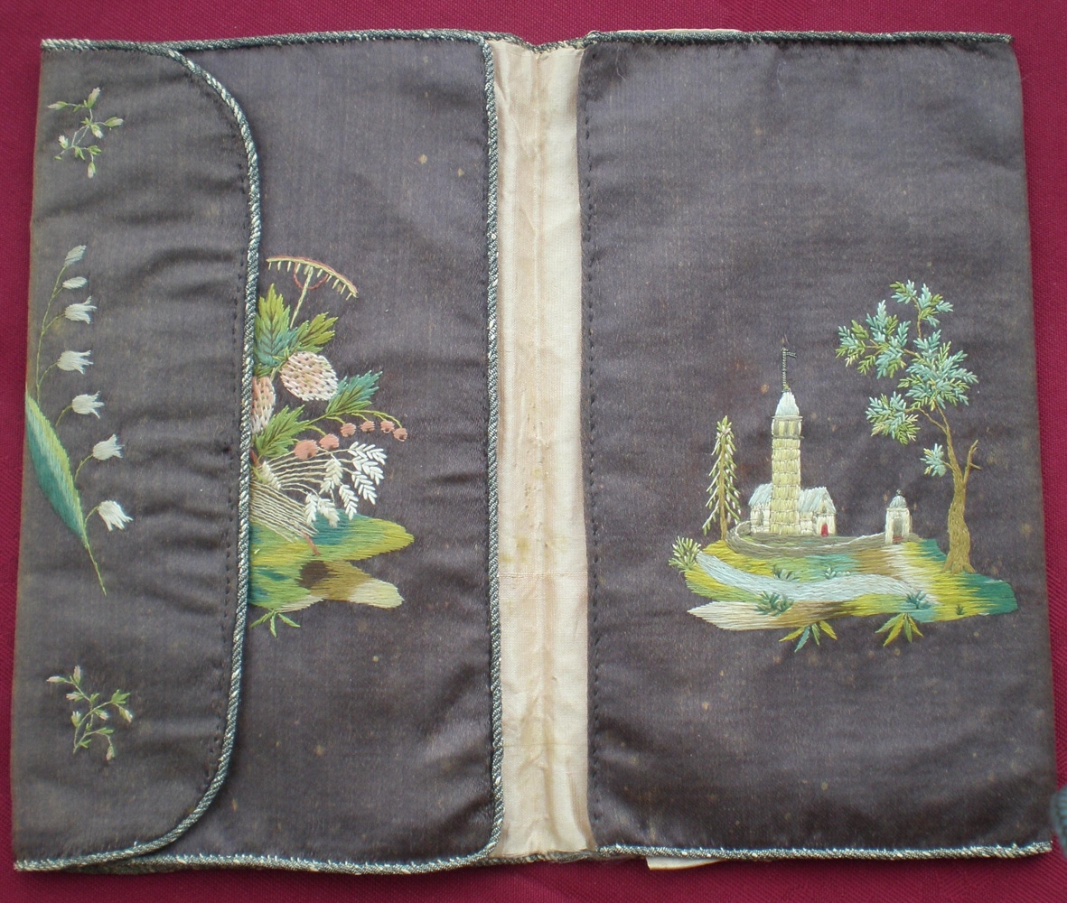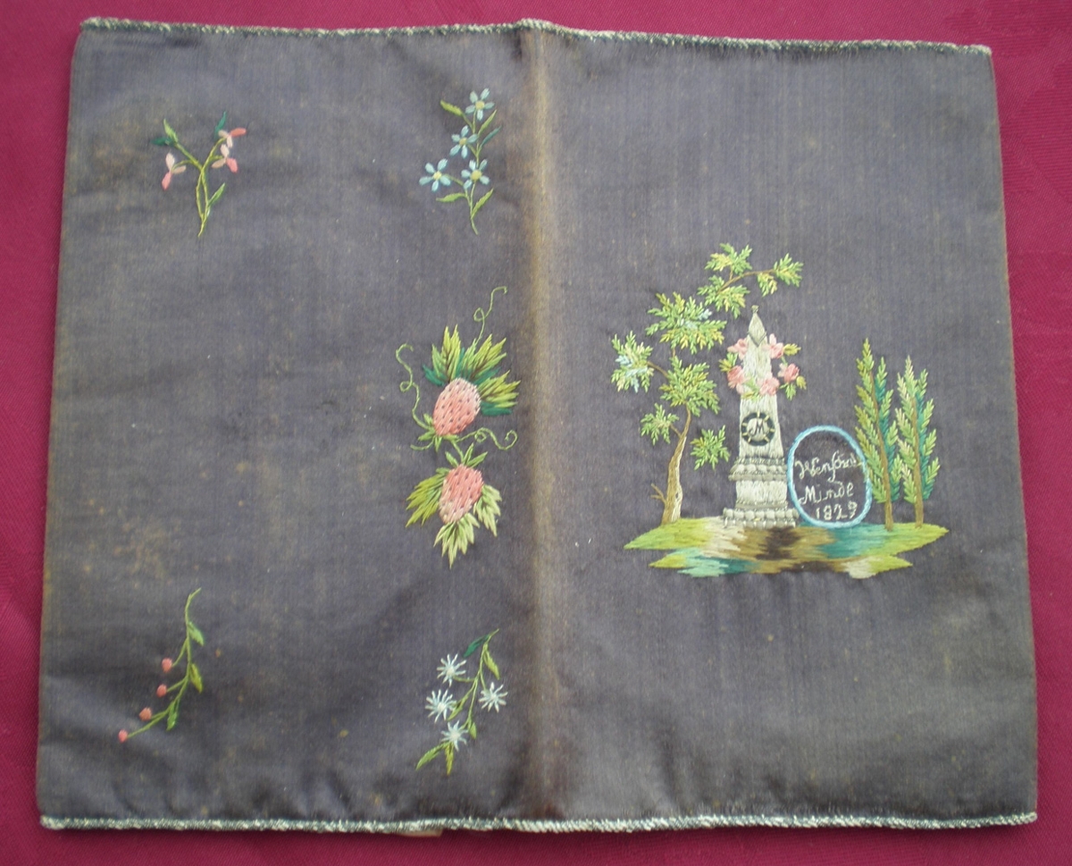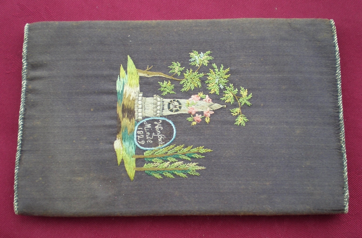 Veski, útsaumað, 17x10.5 cm. Úr búi Þóru Sigurðardóttur, móður gefanda.