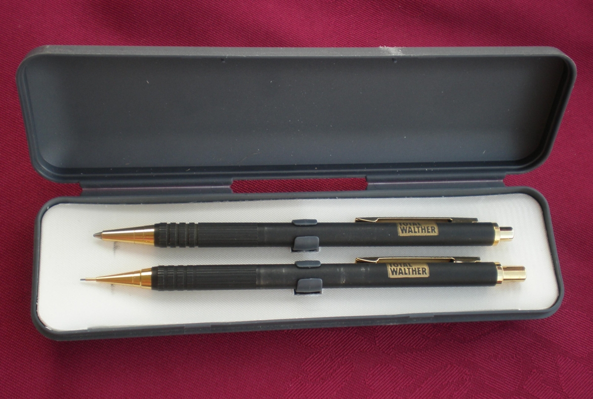 Pennasett, kúlupenni og skrúfblýantur í öskju. “Total Walther”, afmælisgjöf.