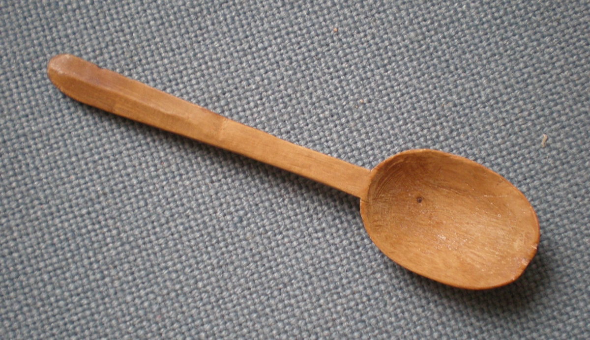 Tréskeið, 16 cm löng. Úr eigu Herdísar Sigurðardóttur, Hofsstöðum.