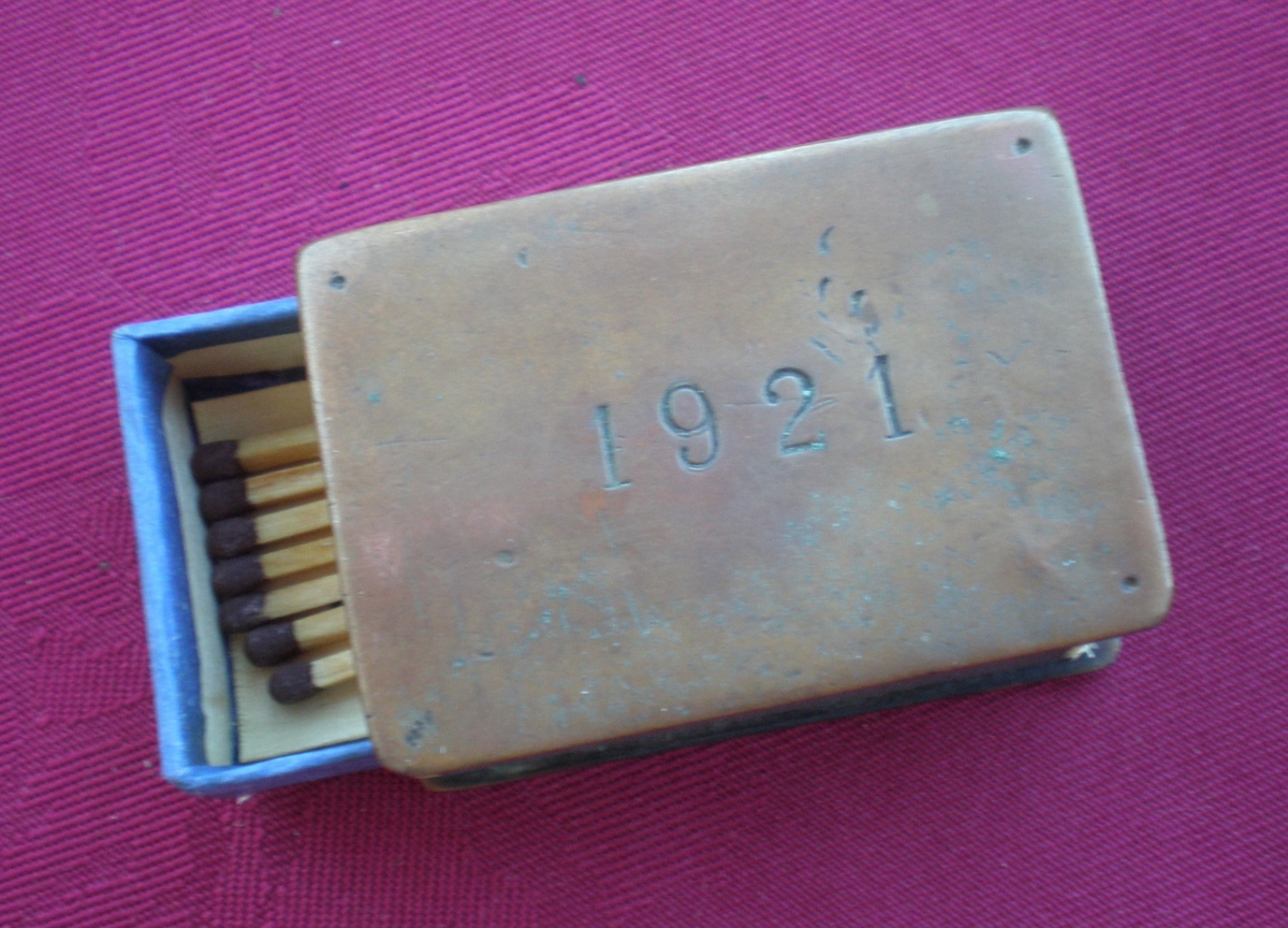 Hulstur utan um eldspýtnastokk úr koparblöndu. Á það er grafið annars vegar S. S. ÁRDAL og hins vegar ártalið 1921. Úr eigu Sigurðar Sigurðssonar, Ytri-Skeljabrekku, og smíðað af honum.