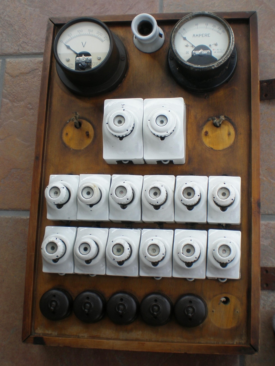 Stjórnborð fyrir heimarafstöð frá Giljum í Hálsasveit. Stjórnborðið er 62x 40.5 cm að stærð, á því er straum og spennumælir, tólf postulínshylki fyrir 25A/500V vartappa og tvö stærrri fyrir 35A/500V vartappa. Á töfluna vantar einn ,,slökkvara“ fyrir ljós og tvær innstungur, önnur var til að hita element fyrir vatnshitakút og hin var notuð fyrir hleðslu á útvarpsgeymum, skv. Jóhannesi Gestssyni í júlí 2012.