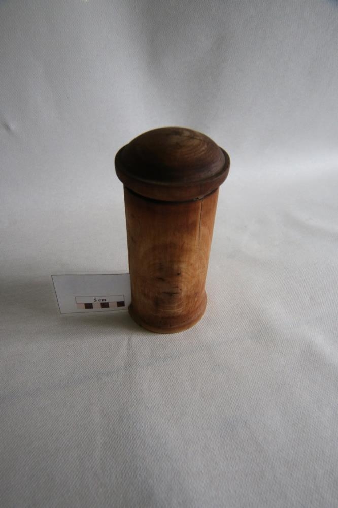Salína Methúsalemsdóttir átti baukinn og notaði undir trélím, gaf síðan Methúsalem Guðjónssyni.