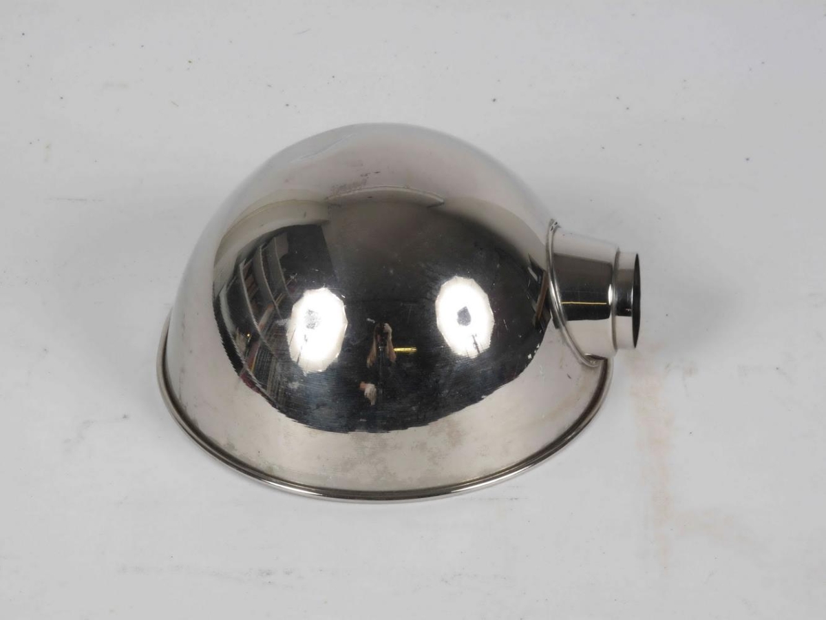 Lampaskermur. Hálfkúla úr málmi, 16 sm í þermál. Með gati og stút fyrir perustæði og hugsanlega handfangi. Sjá NS 1446Eigandi/notandi: Högni Björnsson (?)
