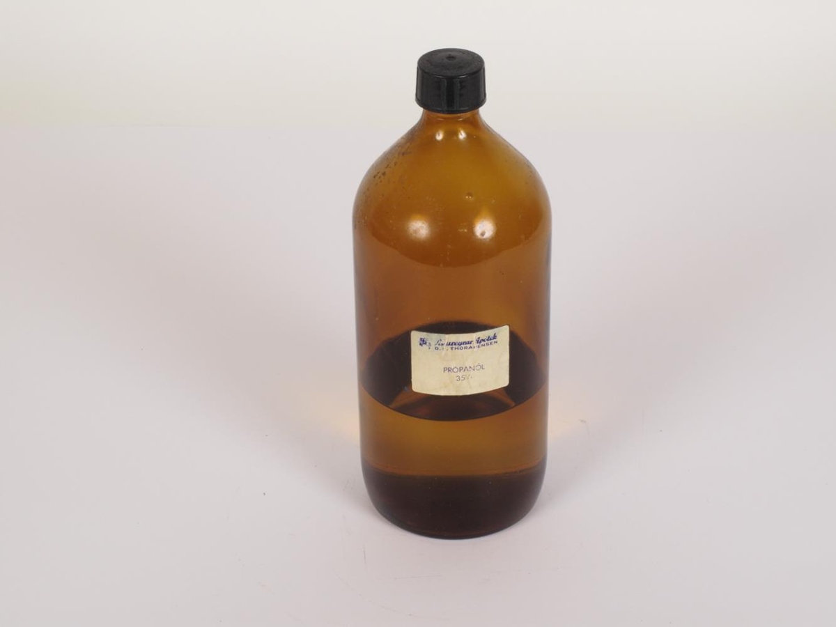 Brún lyfjaflaska er inniheldur Própanól, til hreinsunnar og sótthreinsunnar.