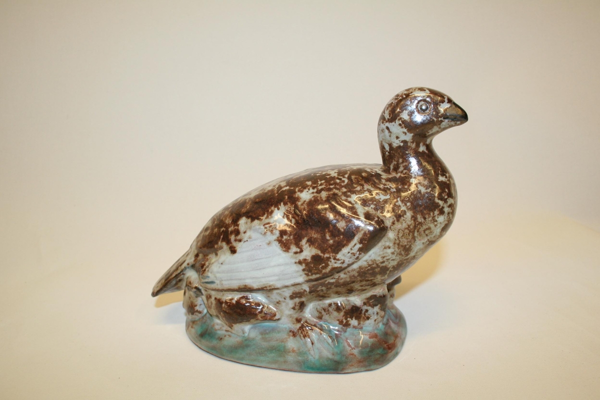 Rjúpa, stytta gerð úr leir, brennd með glerungi.