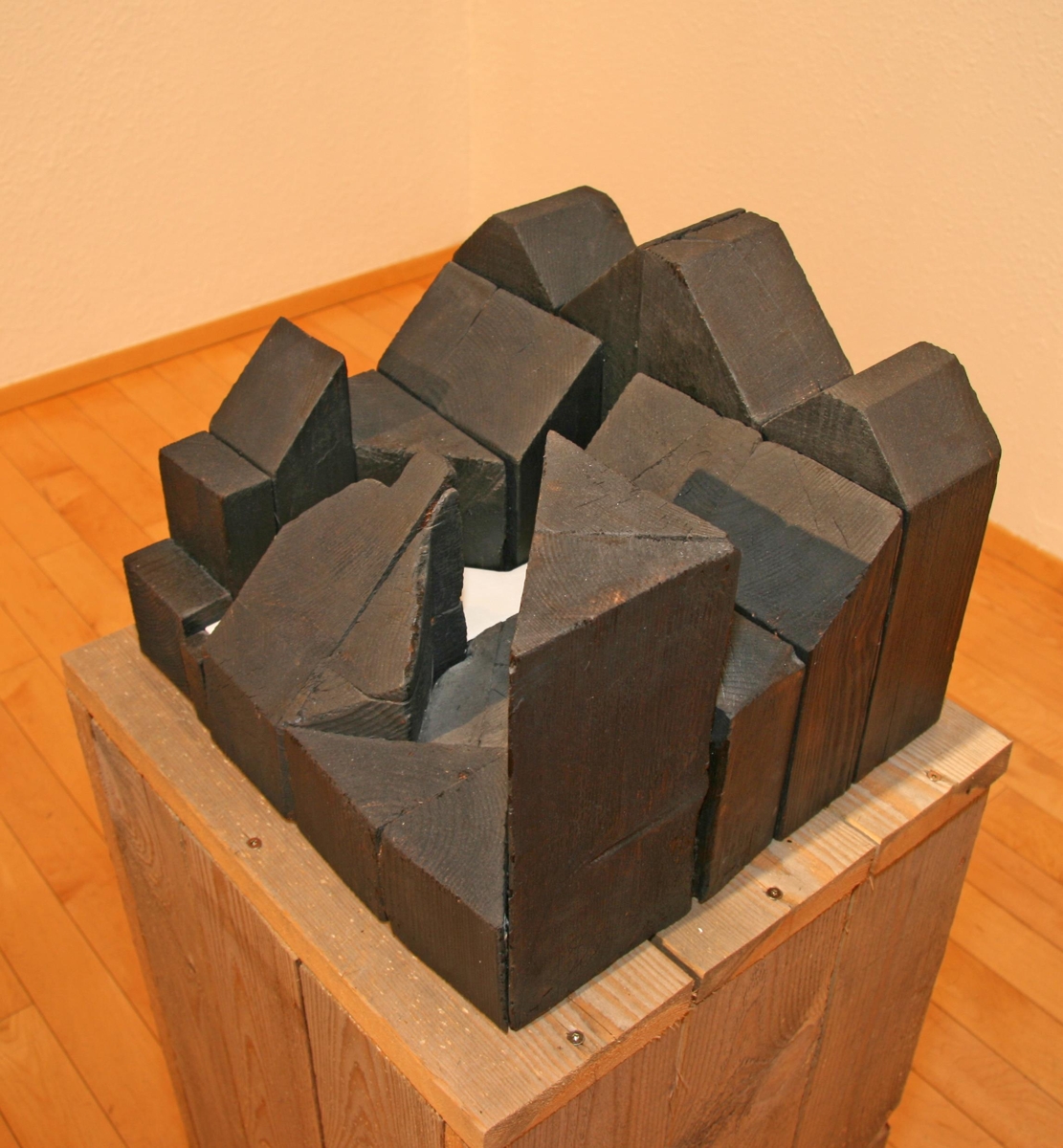 Verkið er tvískipt, skúlptúrstærð 26 x 35 x 32 cm. stöpull 96 x 41x 38 cm.