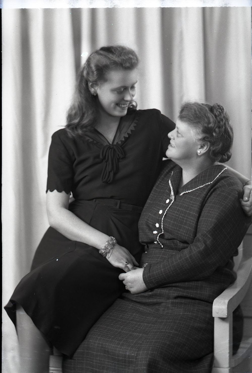 Gerda Simson og dóttir hennar Lilly eða Elly Simson, sitja saman og horfa hvor á aðra.