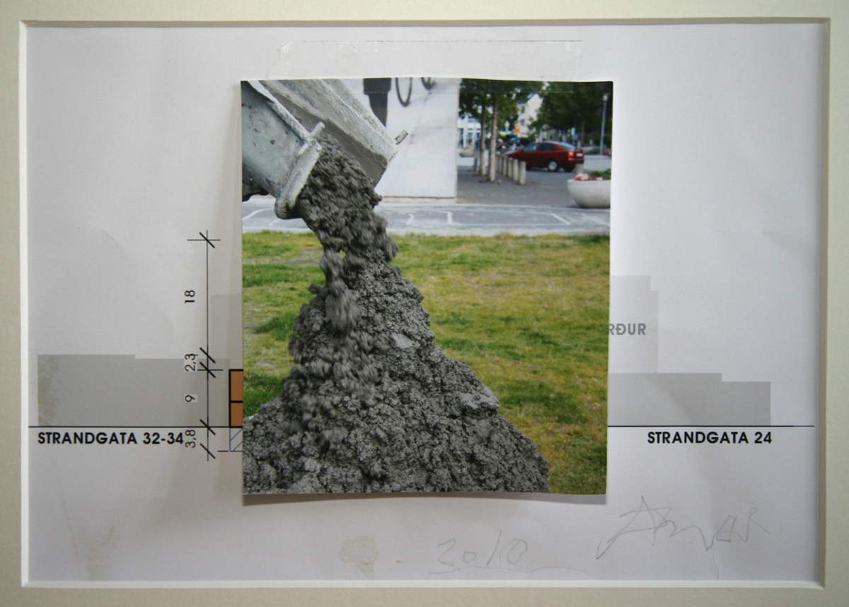 Ljósmyndin er af útilistaverki sem sett var upp á samsýningunni Að elta fólk og drekka mjólk í Hafnarborg árið 2010. Steyptur hluti verksins var settur við Standgötu á meðan á sýningu stóð en fjarlægður að henni lokinni. Verkið er nú til í formi ljósmyndar (dl: og texta sem skráður er hér að ofan og er varðveittur sem ljósrit) sem varðveitt er í Hafnarborg.