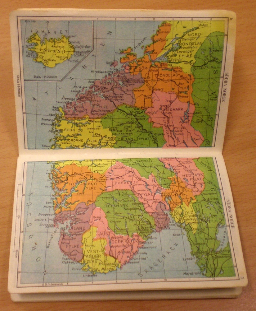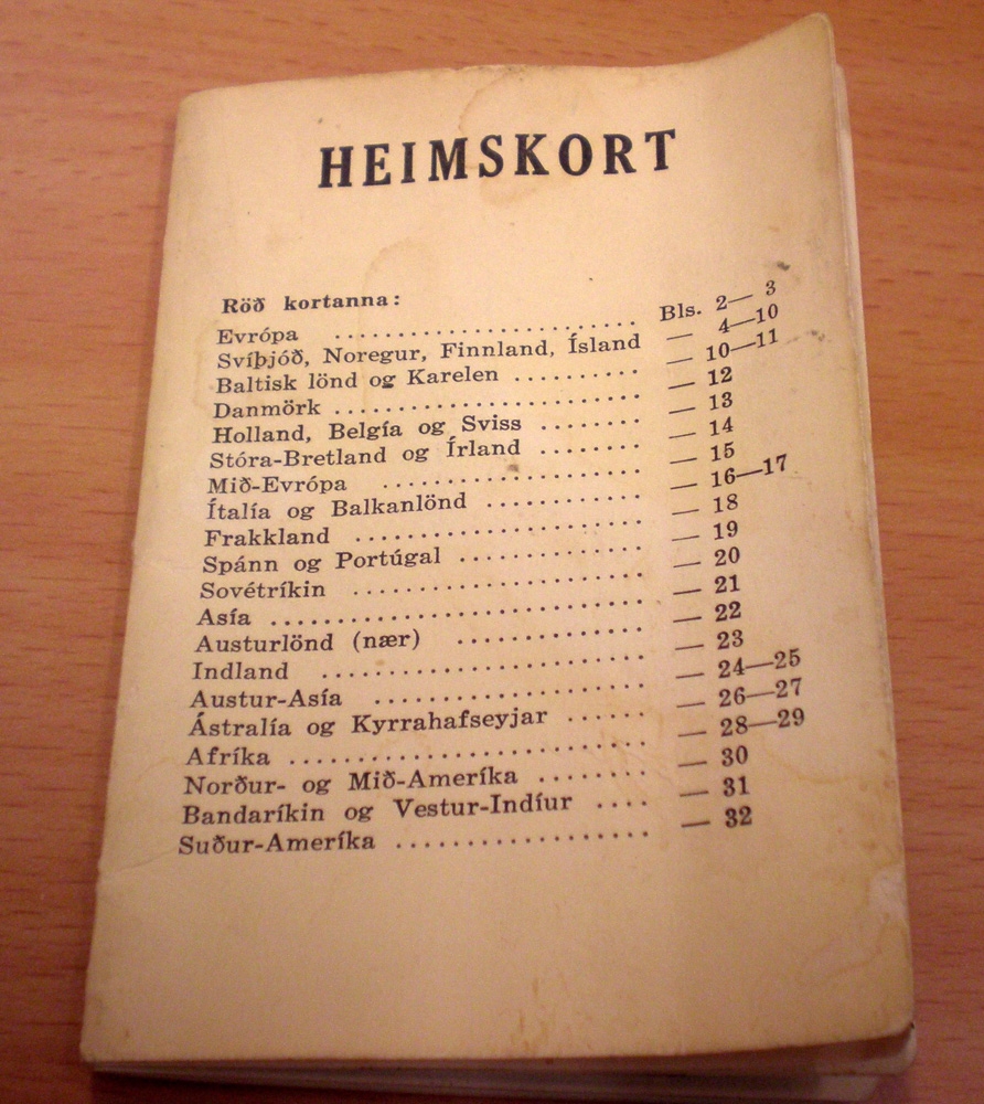 Heimskort í vasaútgáfu, stærð pésa 9.7 x 6.8 cm.